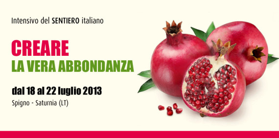 CREARE LA VERA ABBONDANZA dal 18 al 22 luglio 2013  L’intensivo avrà struttura residenziale e si svolgerà nel centro per seminari del Sentiero presso la sede della Casa Editrice « La Crisalide » a Spigno Saturnia (Formia) >> scarica la brochure Il filo rosso del seminario è tracciato dalle seguenti lezioni della Guida : • >> Lezione 130…